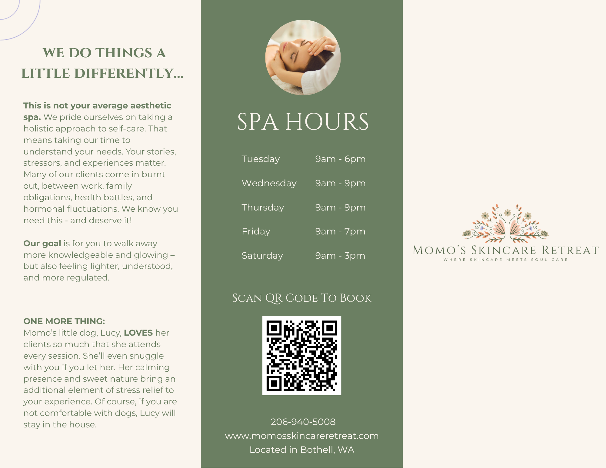I led a full rebuild of her client-facing experience by redesigning her website, restructuring her services and pricing, creating branded collateral including a logo, spa brochure and business cards, and implementing an online booking system. This first phase focused on establishing a clear, cohesive foundation for her business. The next phase is currently underway with work in content, social media, and paid advertising to support continued growth.